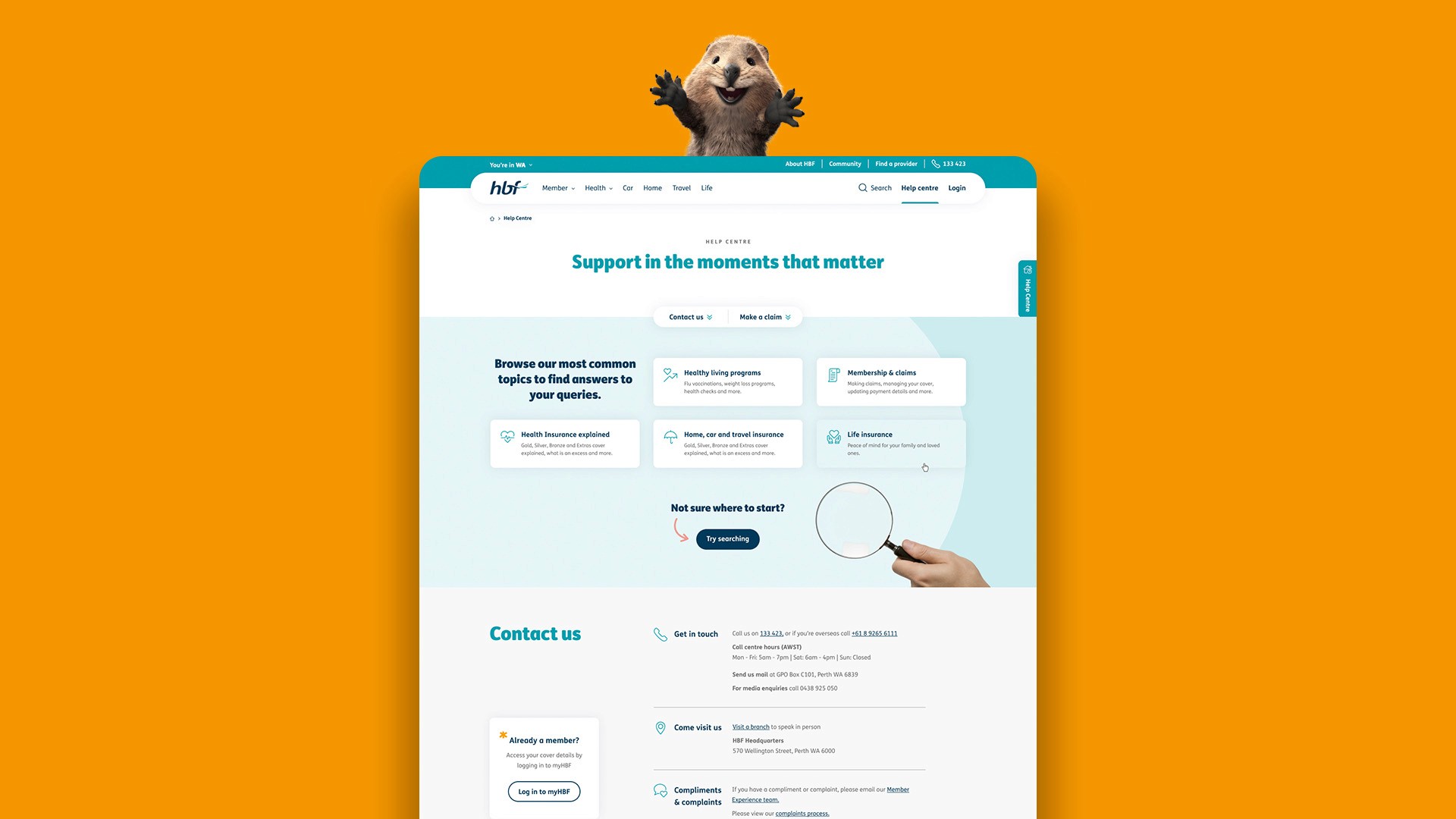 I worked within a sizeable, well-oiled design team to redesign HBF's website, bringin their tongue-in-cheek visual language to an enormous platform. With responsibilities across brochureware, product pages and help centre platforms, I collaborated closely with multiple designers from other squads to ensure we were all working towards the same end goal.