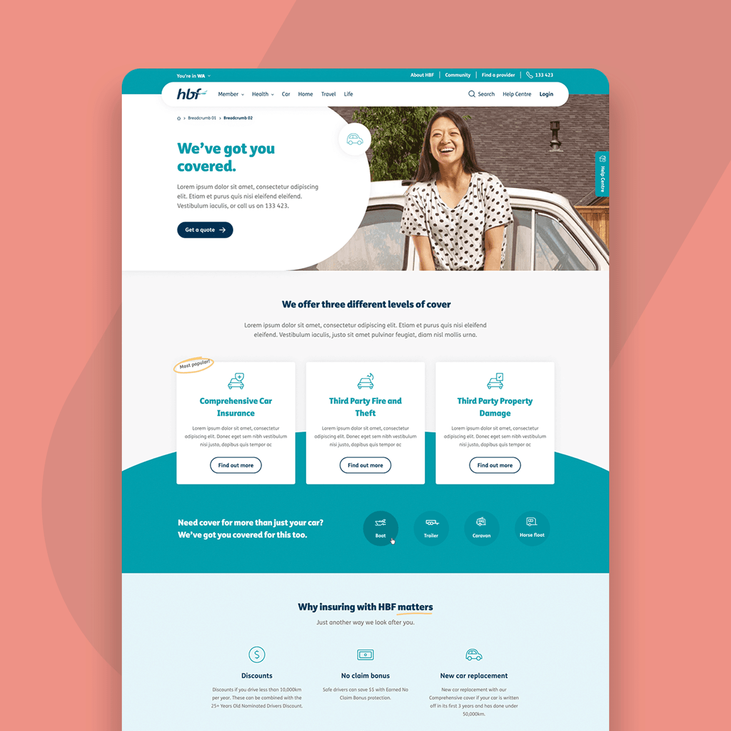 The charisma of HBF's brand had begun to outpace what their old site had been capable of. With a move of online platforms from a legacy system to a new one on the horizon, I was embedded within the HBF design team for a 7 month period, working closely with their web and CRM squads to create their new online experience.