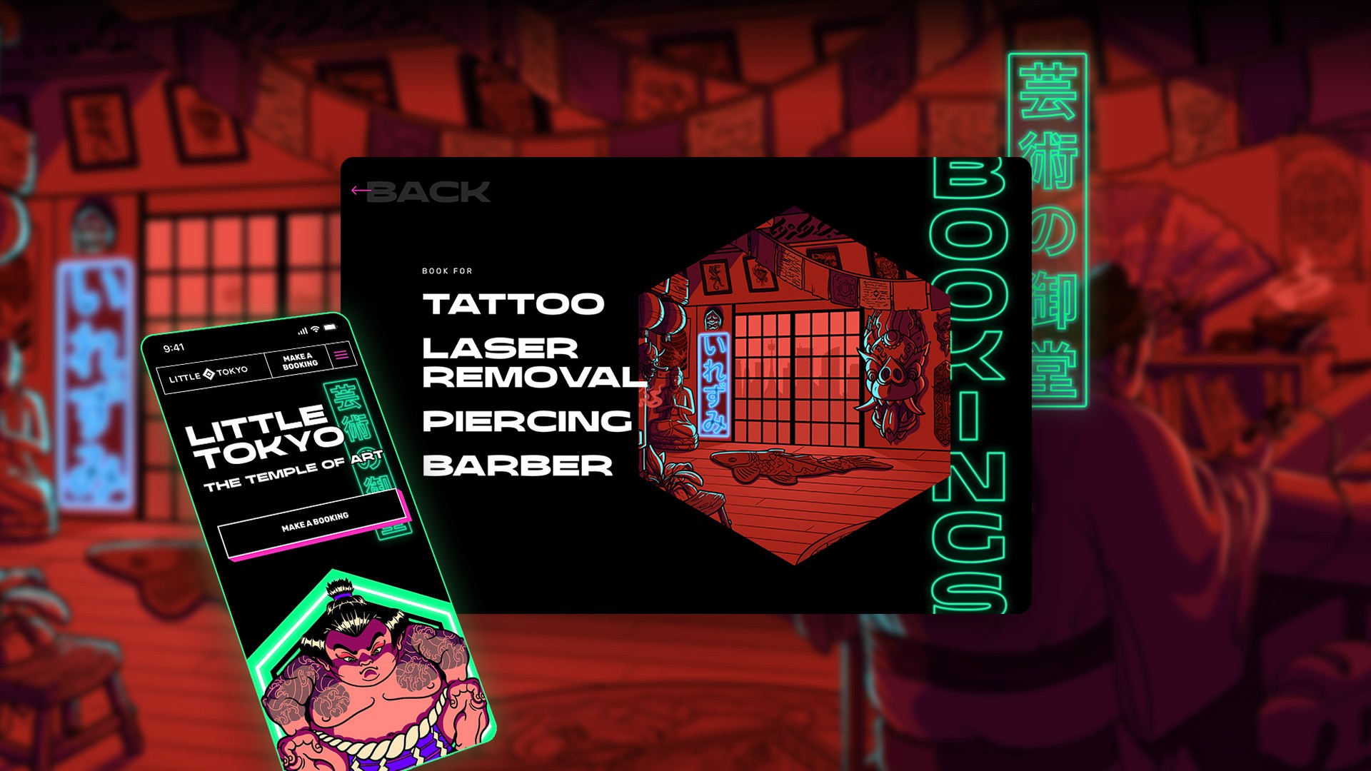 Little Tokyo has a rich heritage steeped with strong cultural and artistic roots. Stemming from a deep appreciation of traditional Japanese art forms, the studio has grown to encompass all genres of tattoo artistry; as the designer on this project, it was important to create an ecosystem that paid homage to this history while ensuring that the site is a modern, exciting standout amongst top tattoo websites for years to come.